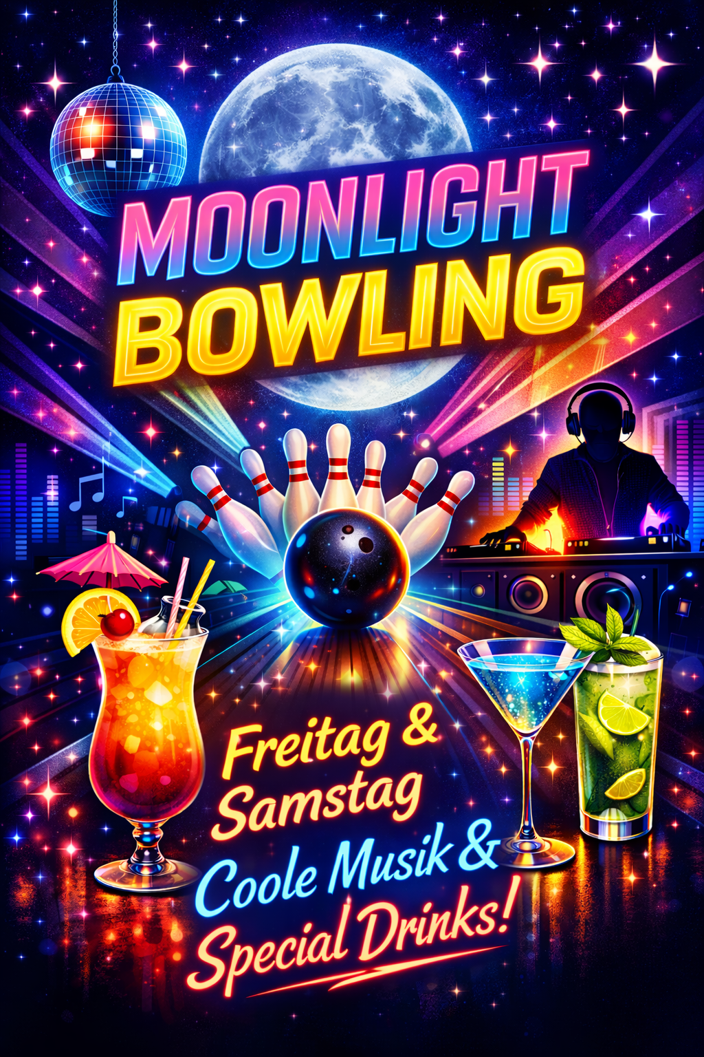 Moonlight Bowling mit cooler Musik und Special Drinks